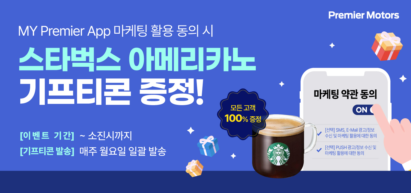 My Premier App 마케팅 활용 동의 시 스타벅스 아메리카노 기프티콘 증정!